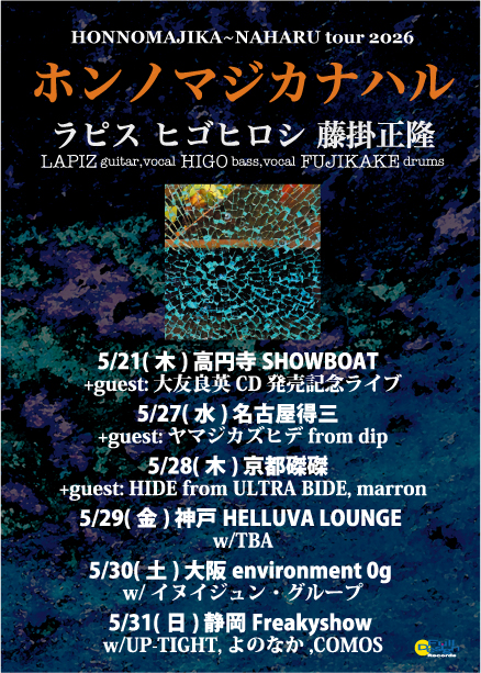 ホンノマジカナハル:ラピス(g,vo) ヒゴヒロシ(b,vo) 藤掛正隆(ds)